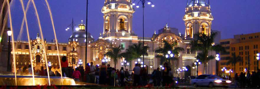 Descubra la belleza de Lima, visitando sus principales monumentos arquitectónicos hermosamente iluminados bajo la tranquilidad y el embrujo de la noche Limeña.
